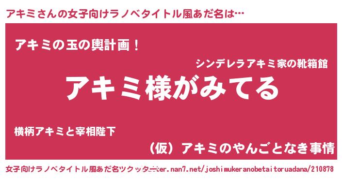 | 恥ずかしいあだ名 | 『アキリンリン』『プリティーアキミ』 |