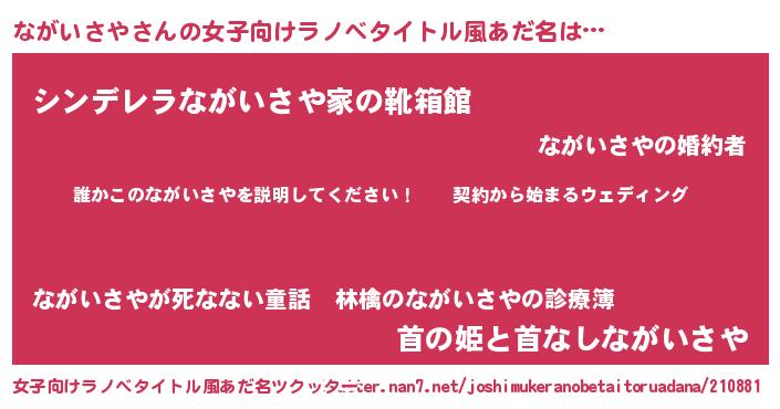 | 男性向けラノベタイトル風あだ名 | 『ナガイサヤアートオンライン』 |