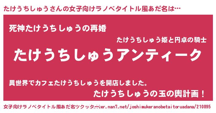 | 男性向けラノベタイトル風あだ名 | 『魔法科高校のたけうちしゅう』 |
