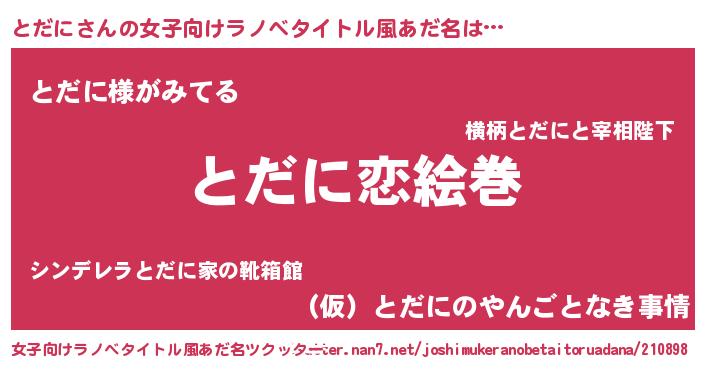 | 肩書あだ名 | 『とだに助教授』『とだにリーダー』 |