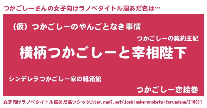 | 男性向けラノベタイトル風あだ名 | 『つかごしーに滅ぼされるだけの簡単なお仕事です』 |