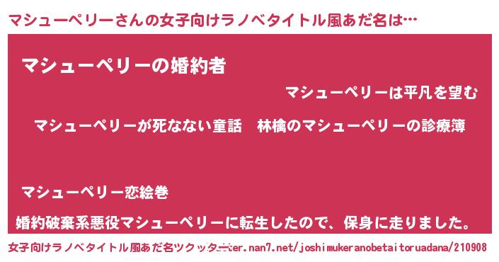 | 意味不明あだ名 | 『住所不定無職マシューペリー(95歳)』 |