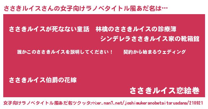 | 男性向けラノベタイトル風あだ名 | 『ササキルイスアートオンライン』 |