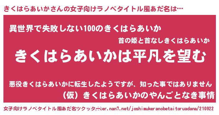 | ヘコむあだ名 | 『きくを』『きくはらあいか(震え声)』 |