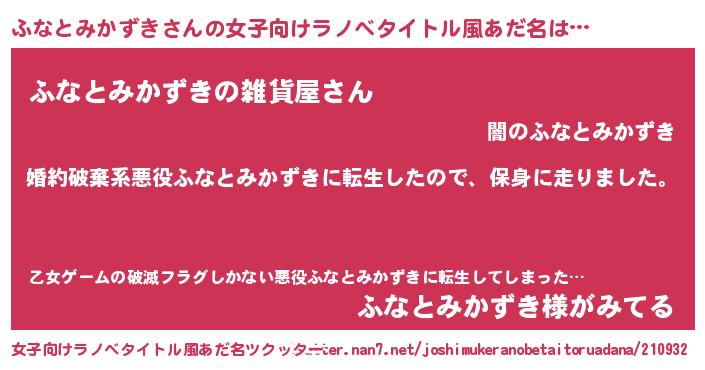 | 男性向けラノベタイトル風あだ名 | 『フナトミカズキスレイヤー』 |
