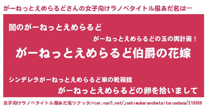 | 意味不明あだ名 | 『がーねっとえめらるどフォーエバー』 |