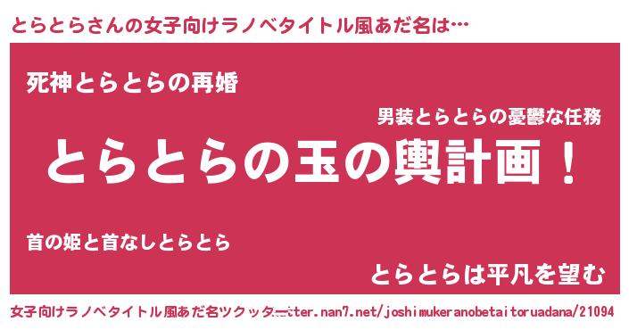 | ヘコむあだ名 | 『とらぷりん』『とらふぇ~』 |