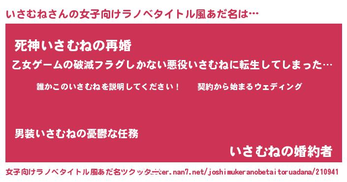 | 男性向けラノベタイトル風あだ名 | 『イサムネアートオンライン』 |