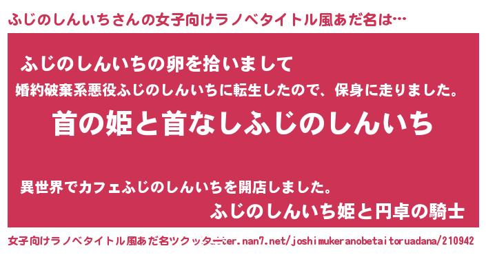 | 男性向けラノベタイトル風あだ名 | 『はたらくふじのしんいちさま!』 |