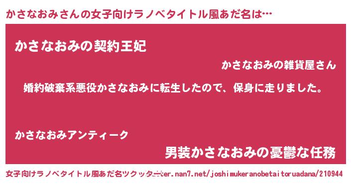 | 男性向けラノベタイトル風あだ名 | 『カサナオミスレイヤー』 |