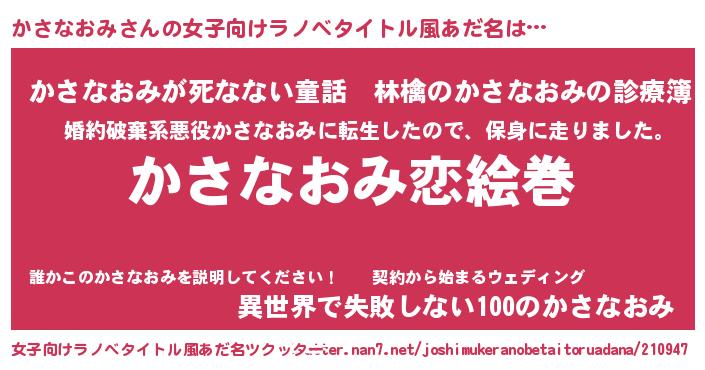 | 男性向けラノベタイトル風あだ名 | 『ノーゲーム・ノーカサナオミ』 |