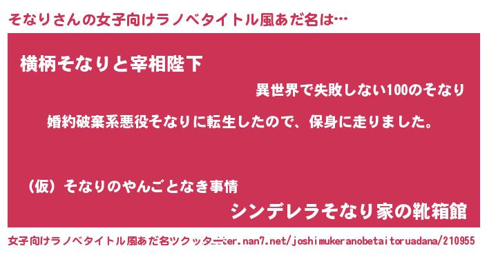 | 恥ずかしいあだ名 | 『そなちん』『プリティーそなり』 |