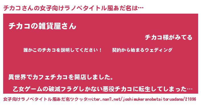 | 男性向けラノベタイトル風あだ名 | 『チカコアートオンライン』 |