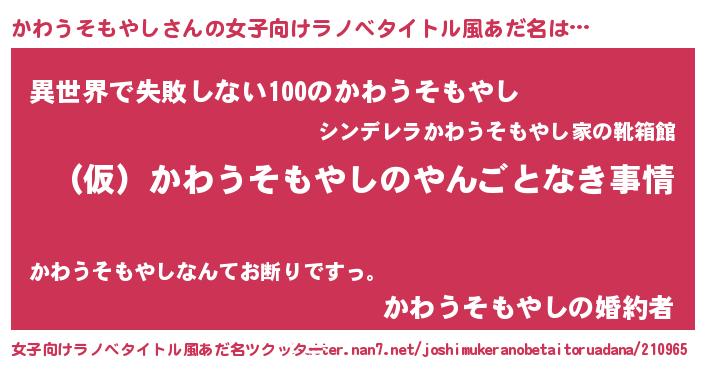 | 胡散臭い通販商品みたいなあだ名 | 『必ず成功する水晶球…その名も「かわうそもやし」』 |