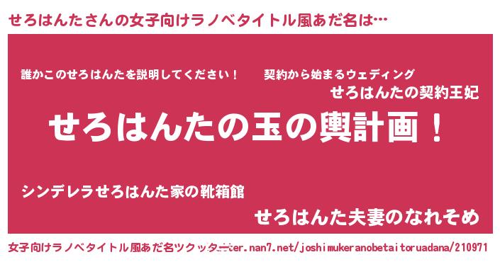 | 胡散臭い通販商品みたいなあだ名 | 『億万長者になれる霊験あらたかなお札…その名も「せろはんた」』 |