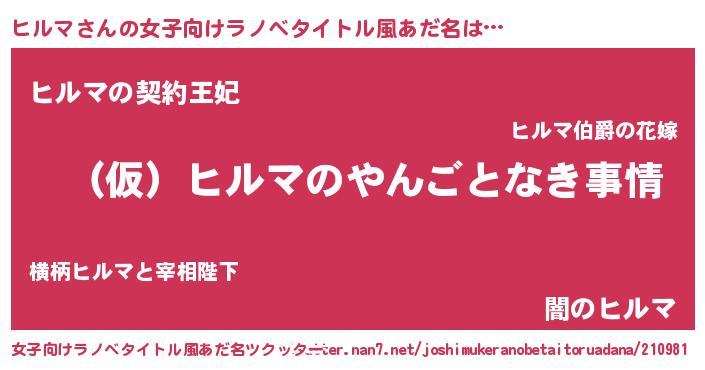 | 胡散臭い通販商品みたいなあだ名 | 『必ず成功する水晶球…その名も「ヒルマ」』 |