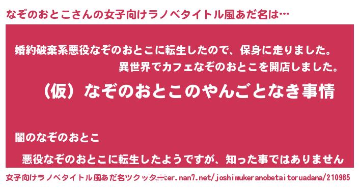 | 男性向けラノベタイトル風あだ名 | 『なぞのおとこの憂鬱』 |
