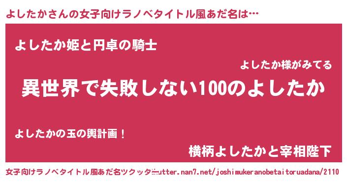 | 男性向けラノベタイトル風あだ名 | 『よしたかという概念が存在しない退屈な世界 』 |