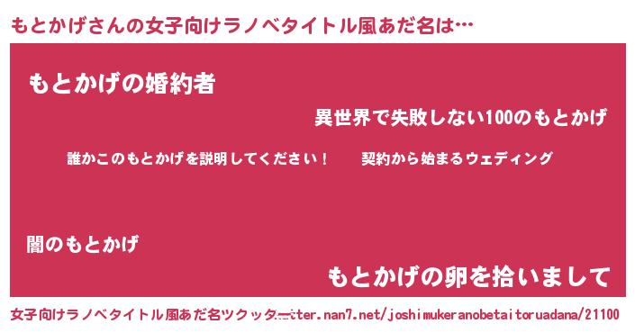| 男性向けラノベタイトル風あだ名 | 『モトカゲアートオンライン』 |
