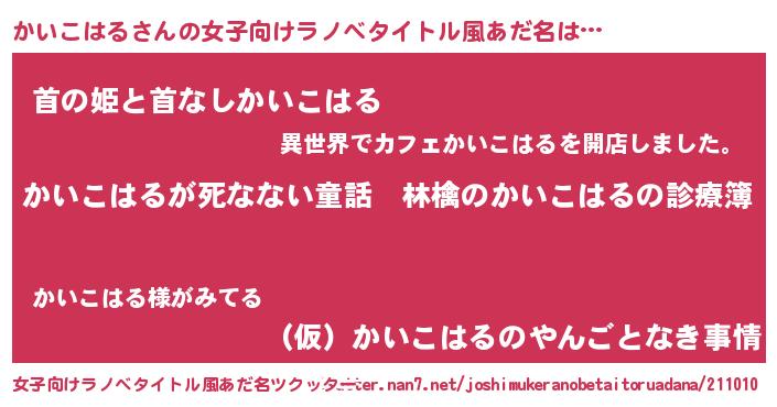 | 意味不明あだ名 | 『住所不定無職かいこはる(4歳)』 |