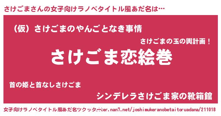 | 男性向けラノベタイトル風あだ名 | 『ノーゲーム・ノーサケゴマ』 |