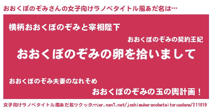 | 男性向けラノベタイトル風あだ名 | 『ダンジョンにおおくぼのぞみを求めるのは間違っているだろうか』 |