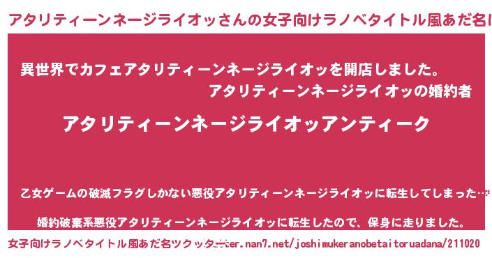| 男性向けラノベタイトル風あだ名 | 『魔法科高校のアタリティーンネージライオッ』 |