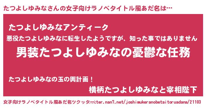 | ヘコむあだ名 | 『たつよしゆみな(小並感)』『たつもー』 |