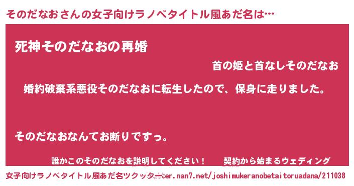 | 男性向けラノベタイトル風あだ名 | 『ソノダナオスレイヤー』 |