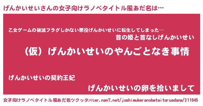 | 男性向けラノベタイトル風あだ名 | 『げんかいせいの憂鬱』 |