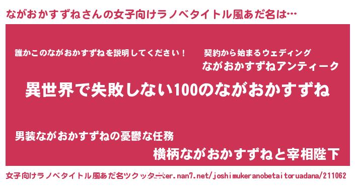 | 男性向けラノベタイトル風あだ名 | 『ながおかすずねという概念が存在しない退屈な世界 』 |