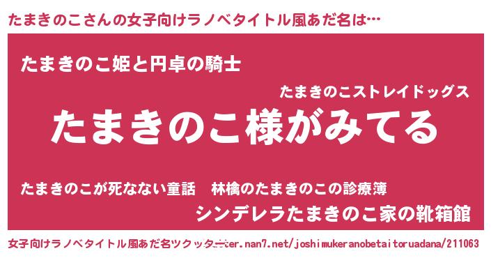 | 男性向けラノベタイトル風あだ名 | 『たまきのこの嫁は女の子じゃないと思った?』 |