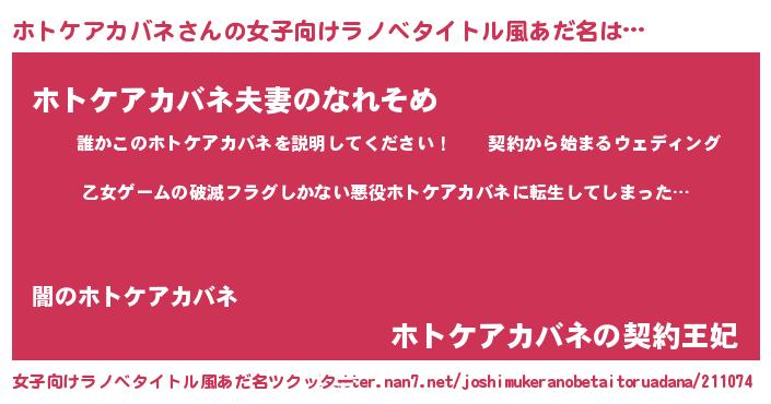 | 男性向けラノベタイトル風あだ名 | 『この素晴らしい世界にホトケアカバネを!』 |