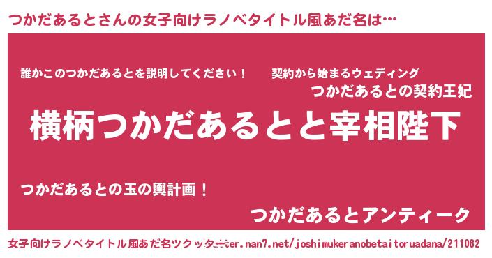 | 男性向けラノベタイトル風あだ名 | 『つかだあるとに滅ぼされるだけの簡単なお仕事です』 |