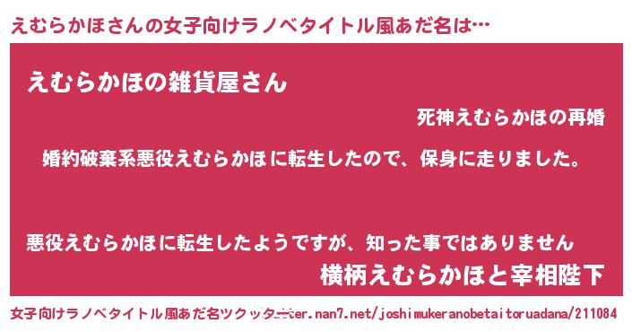 えむらかほさんの女子向けラノベタイトル風あだ名