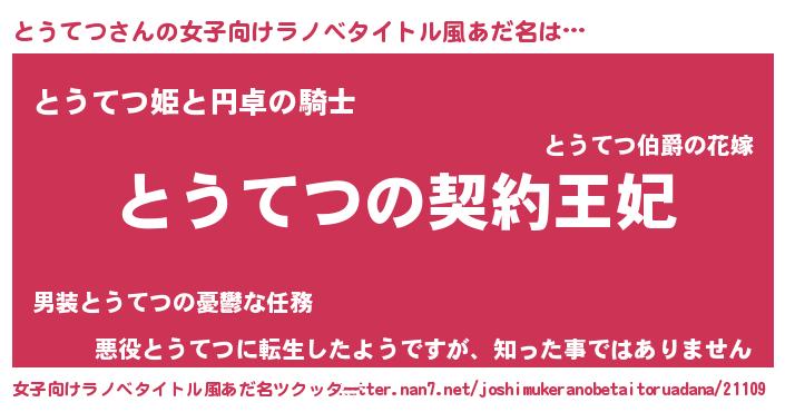 | 胡散臭い通販商品みたいなあだ名 | 『来世でも幸せになれる健康食品…その名も「とうてつ」』 |