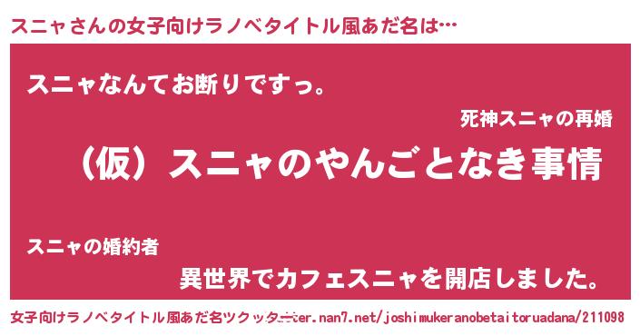 | 男性向けラノベタイトル風あだ名 | 『スニャの憂鬱』『魔法科高校のスニャ』 |