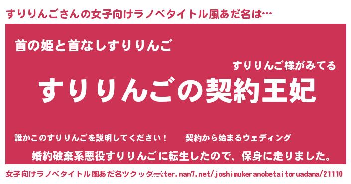 | 男性向けラノベタイトル風あだ名 | 『すりりんごという概念が存在しない退屈な世界 』 |