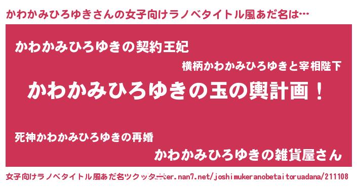 | ヒーロー風カッコイイあだ名 | 『ネオカワカミヒロユキ』『天弓騎士カワ』 |