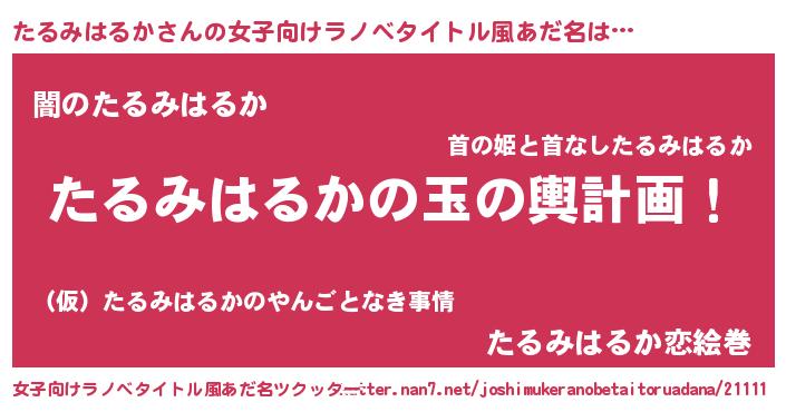 | 男性向けラノベタイトル風あだ名 | 『たるみはるか~年齢イコール彼女いない歴の魔法使い~』 |