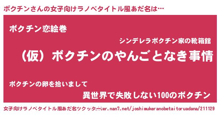 | 男性向けラノベタイトル風あだ名 | 『ボクチンの憂鬱』 |