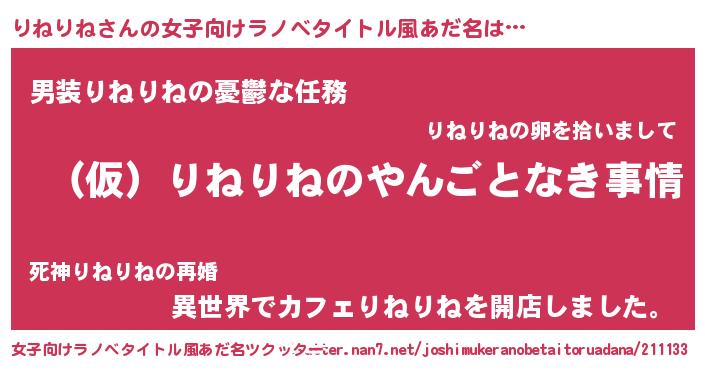 | 男性向けラノベタイトル風あだ名 | 『りねりねの憂鬱』 |