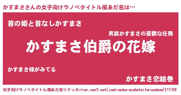| 男性向けラノベタイトル風あだ名 | 『やはりかすまさの青春ラブコメはまちがっている 』 |