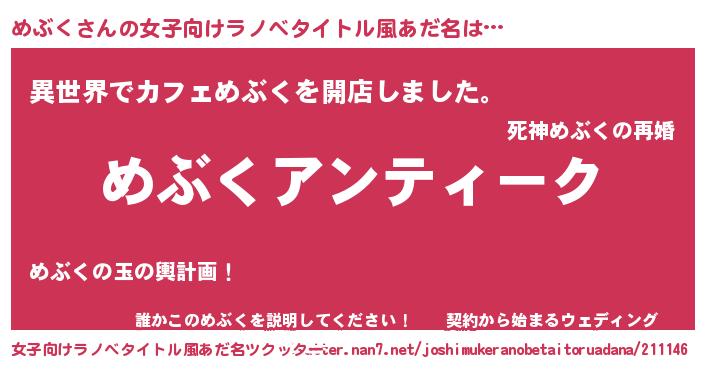 | 意味不明あだ名 | 『自称めぶく』『永久保存めぶく』 |