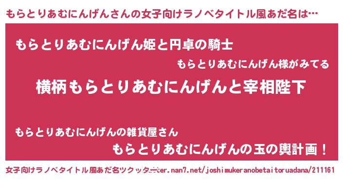 | 欧米人風あだ名 | 『アンジェラ・もらとりあむにんげん』 |