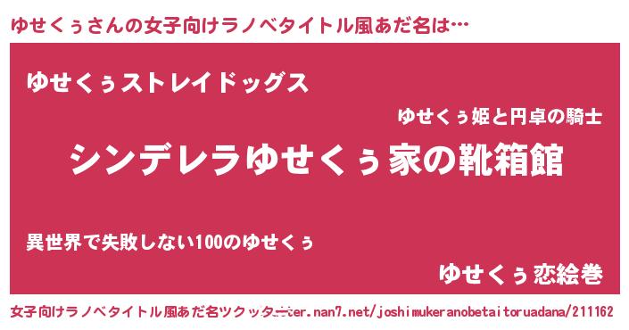 | 男性向けラノベタイトル風あだ名 | 『緋弾のユセクゥ』 |