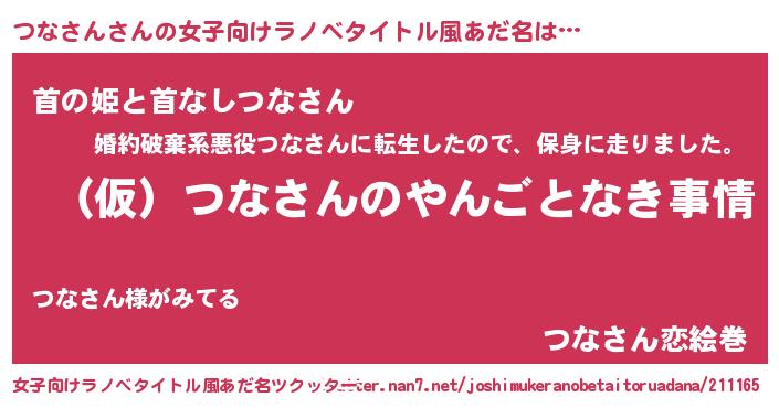 | 男性向けラノベタイトル風あだ名 | 『つなさんの憂鬱』 |