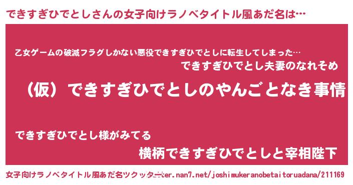 | 男性向けラノベタイトル風あだ名 | 『できすぎひでとしの憂鬱』 |