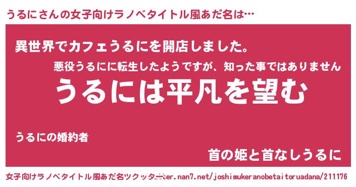 | 胡散臭い通販商品みたいなあだ名 | 『信頼と実績のネックレス…その名も「うるに」』 |