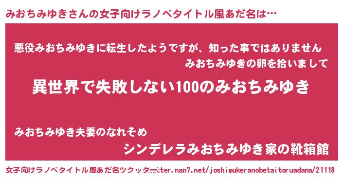 | 意味不明あだ名 | 『永久保存みおちみゆき』 |